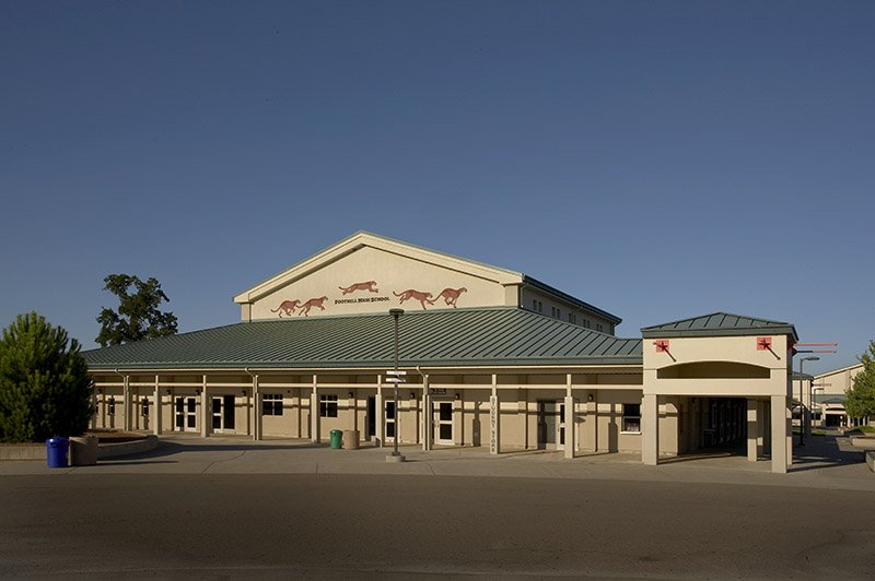 A twenty-four building school campus including a masonry and steel framed gymnasium, a steel framed multipurpose building and a wood framed library, as well as wood framed classroom buildings.